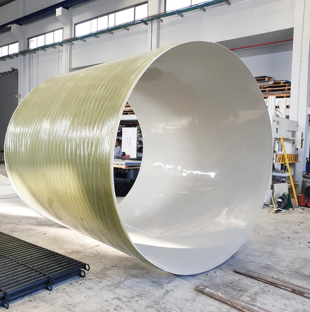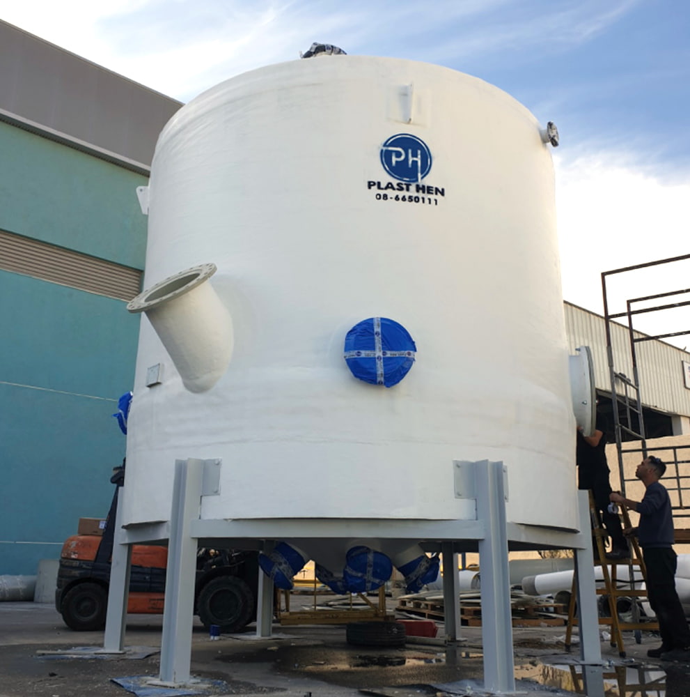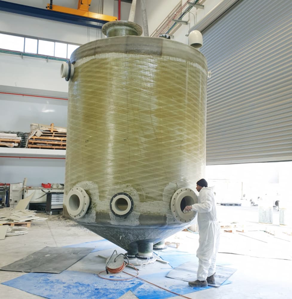 כאשר נדרש חיזוק נוסף למכלי תרמופלסטיים כמו PP או PVDF - במיוחד עבור לחצים גבוהים, נפחים גדולים או סביבות חוץ - ניתן לשלב שיריון חיצוני באמצעות מעטפת FRP (פיברגלס).