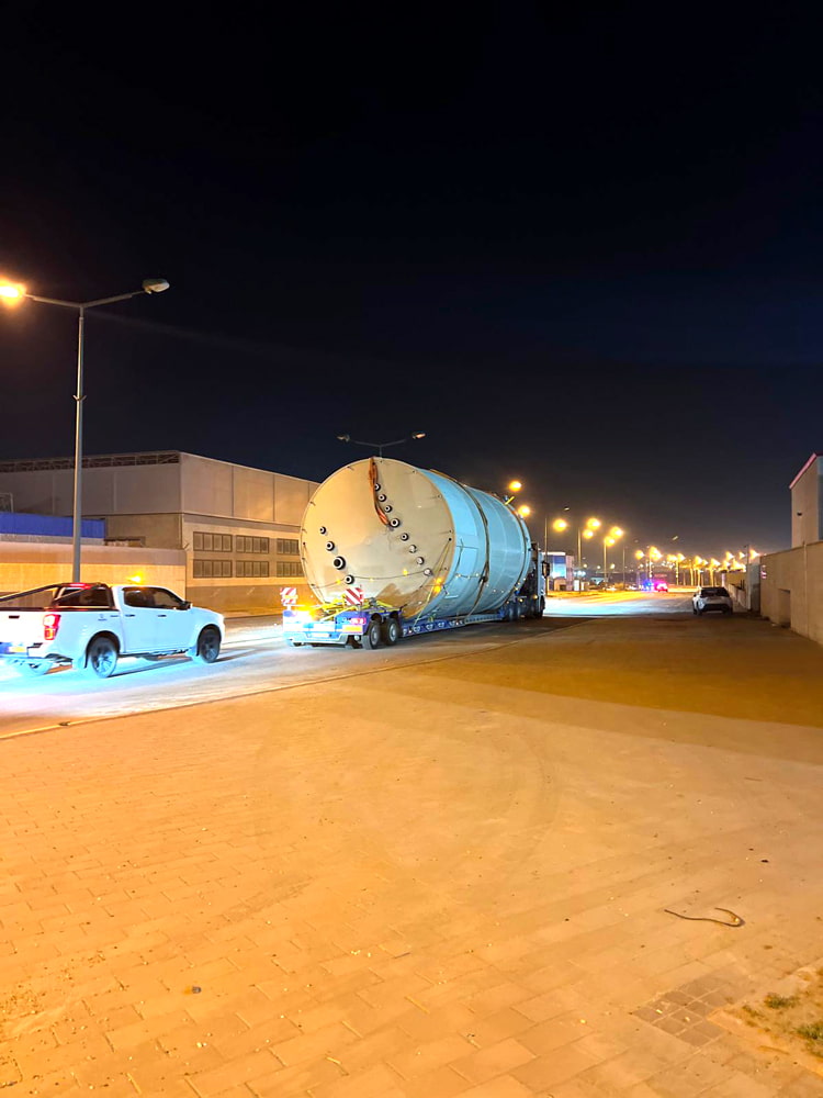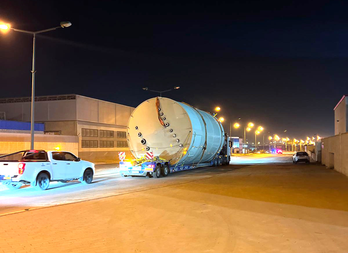 המיכל הובל לאתר בליווי של 12 ניידות משטרה בעקבות ממדיו החריגים.