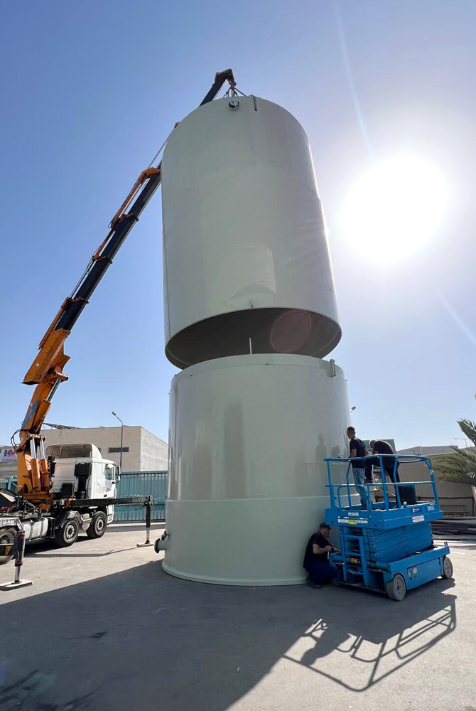 במסגרת פרויקט הנדסי מקיף עבור חברת ICL, תכננו וייצרנו מיכל פוליפרופילן בנפח של 220 מ"ק, בהתאם לדרישות תהליכיות מחמירות וצרכים ייחודיים בשטח.