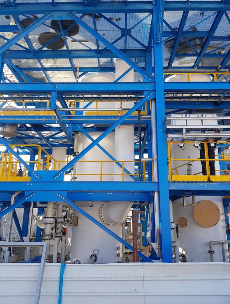 באתר בוצעה הרכבה מלאה, שכללה גם פירוק ופינוי של מיכל ישן שקרס, והשלמת חיבורים לצנרת, אביזרים תפעוליים ומערכות שירות נלוות.