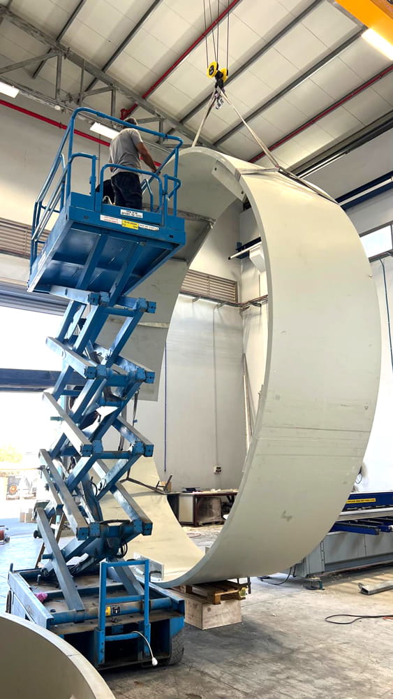 לצורך יצירת הגליל בחלקו התחתון של המיכל, נדרשנו לרתך לוחות בעובי חריג של 120 מ"מ - אתגר ייחודי מבחינה טכנית ותפעולית.