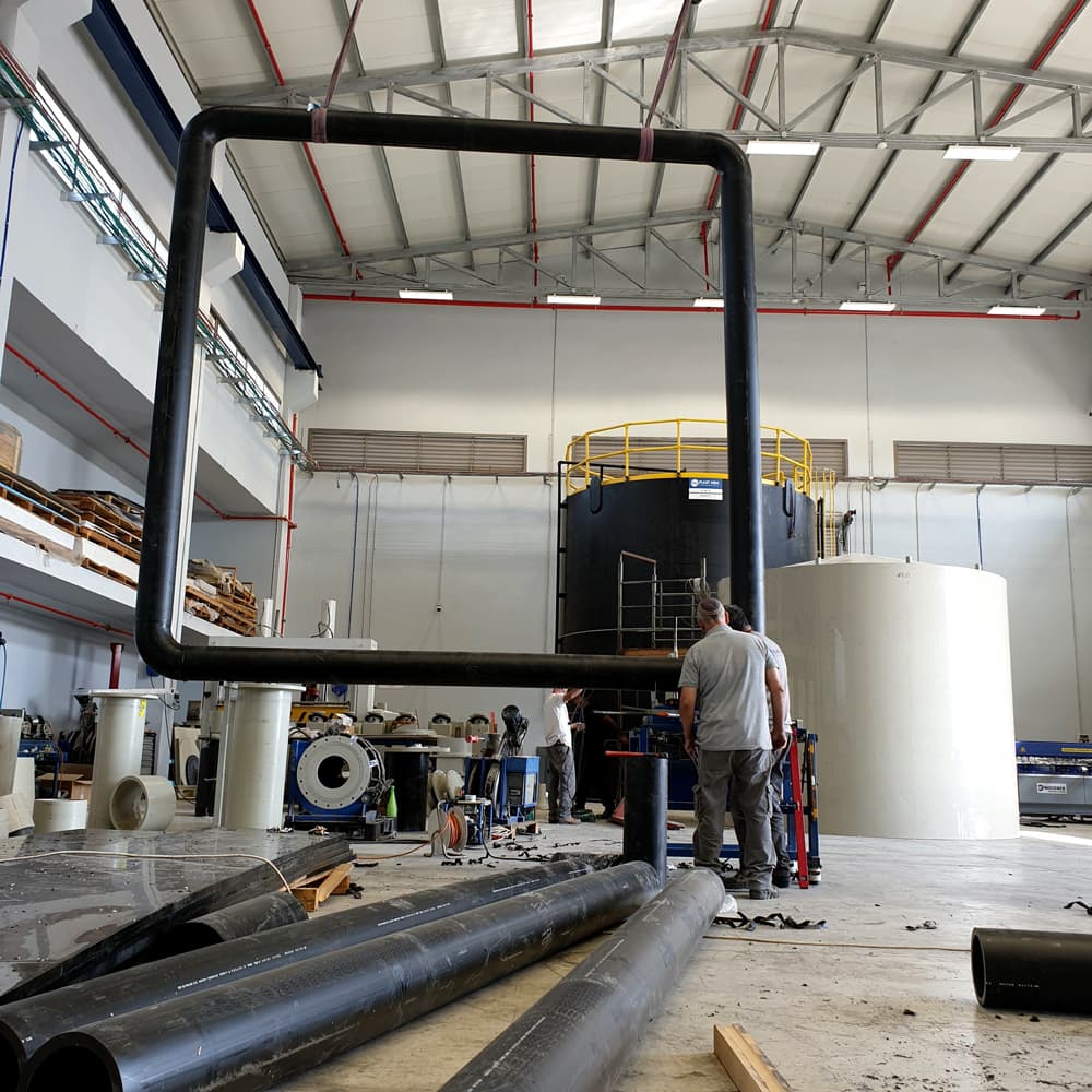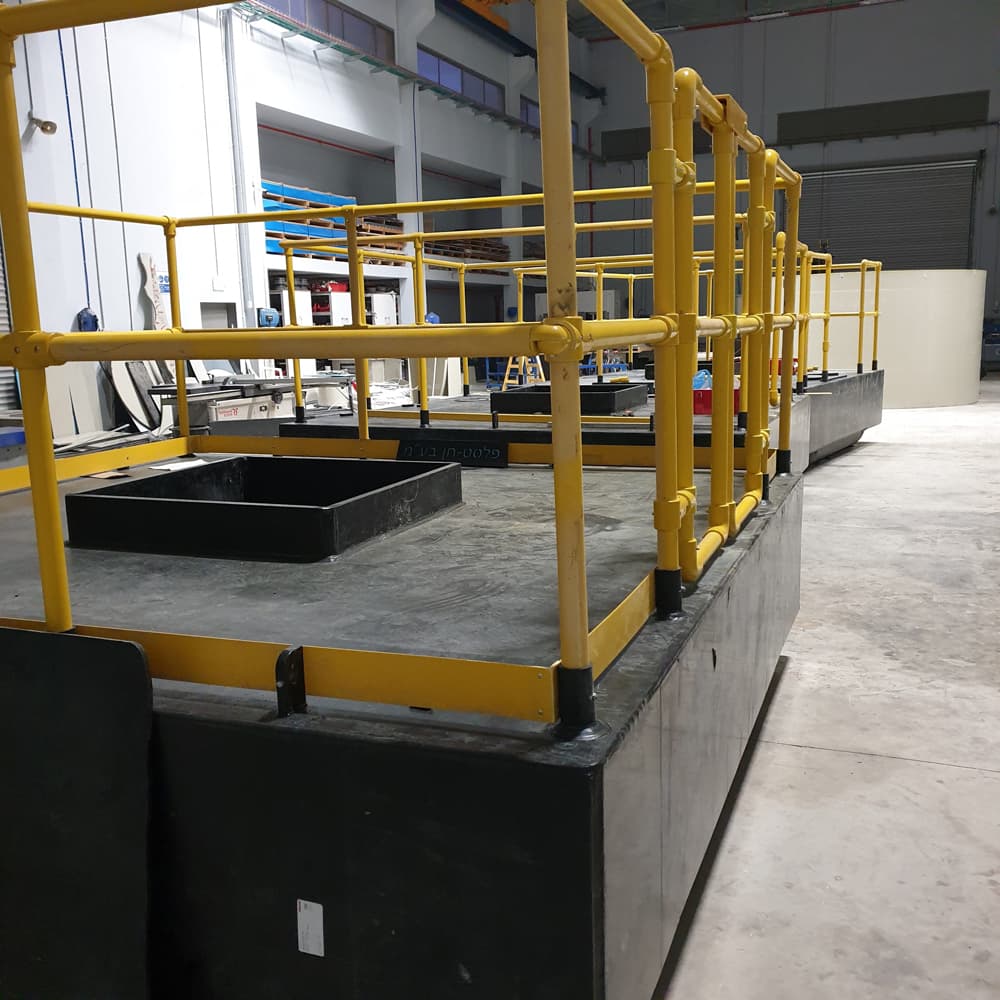 במסגרת פתרון הנדסי לתפעול מערך השאיבה מתוך מאגרי חומצה, חברתנו תכננה, ייצרה והתקינה רפסודות עבודה מחומר HDPE עבור משאבות תעשייתיות כבדות, יחד עם גשרי הליכה ייעודיים, המאפשרים תחזוקה בטוחה ונגישה בסביבה כימית מאתגרת.