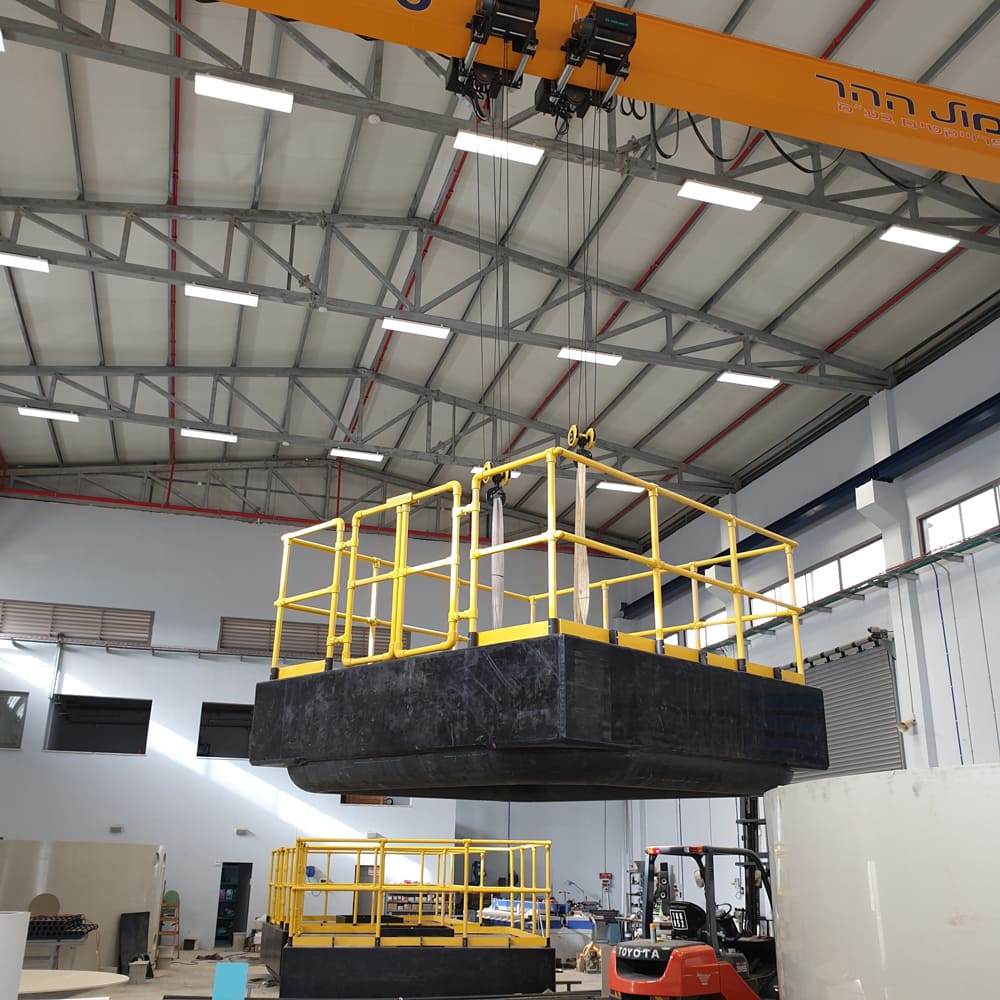 - תכנון וייצור רפסודות מחומר מבנה HDPE - מותאמות לנשיאת משאבות במשקל העולה על טון