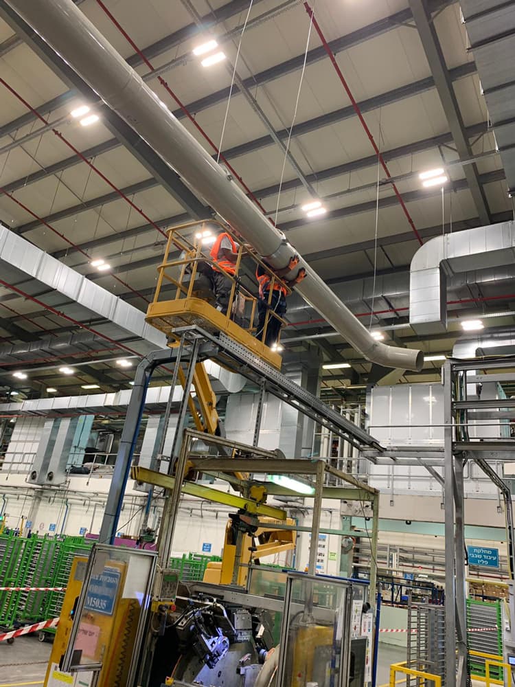 • התקנה מלאה באתר, כולל חיבור מדויק בין התעלה למערכת הנידוף הקיימת במפעל, תוך שמירה על איטום ויעילות זרימה מרבית