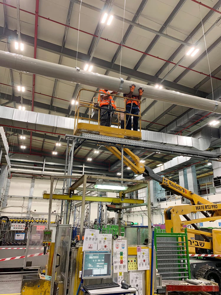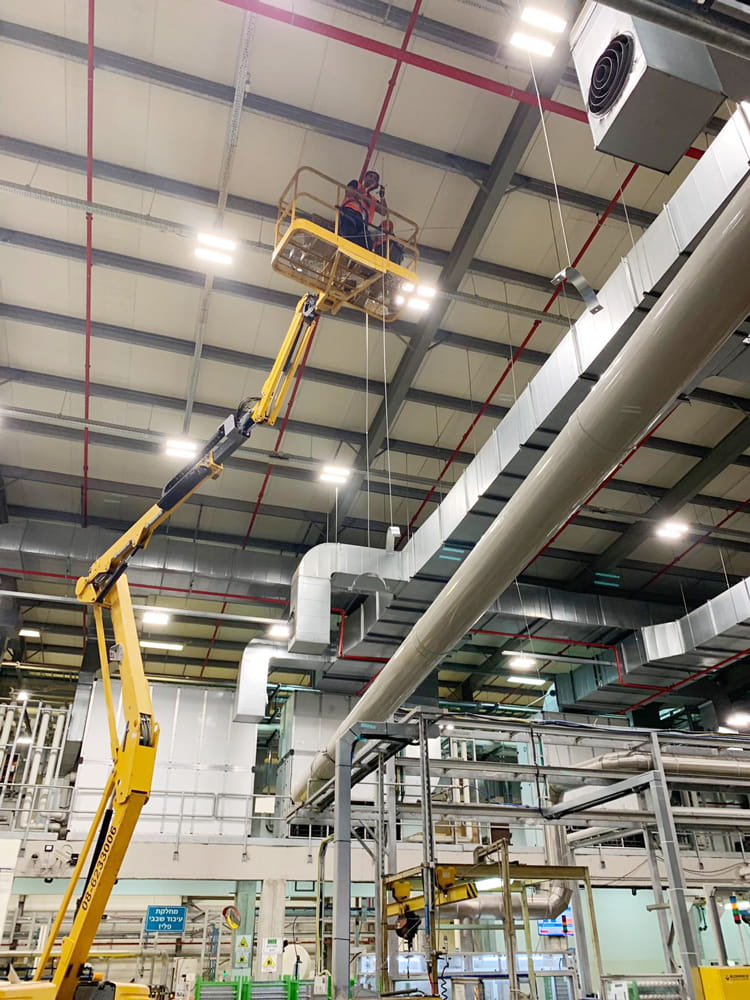 • הכנת ארובה ייחודית, שתוכננה והותקנה ליציאה מגג המפעל בהתאם לתקנות בטיחות וסביבה